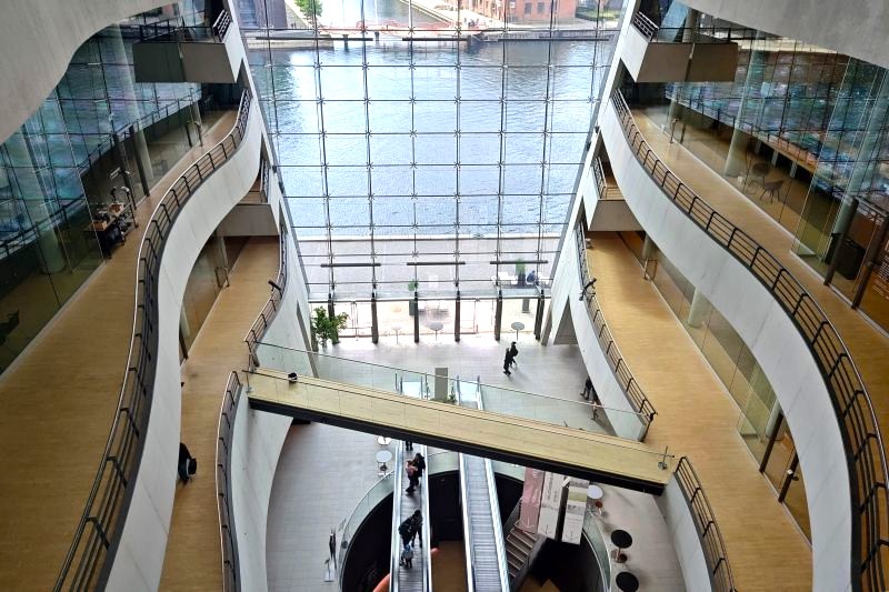 The Royal Library (Det Kongelige Bibliotek) in Copenhagen is the largest library in Northern Europe. Located on the island of Slotsholmen, the main building received a spectacular modern extension in the late 1990s: The Black Diamond. The exterior of this striking building is clad in gleaming black granite, while the interior is inspired by the Northern Lights. Inside, you will find much more than just books. The Black Diamond houses an exhibition space, a shop and a coffee bar overlooking the water, among other things.