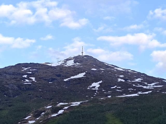 Tip: Drive towards Skjomen Golf Park and continue for approximately 3.5 kilometres beyond it. At the top of the hill near Reinneset, you can park on the right-hand side of the road. The trail begins at the top of the road and follows the ridge uphill. The first 700 metres are unmarked, but after that, small cairns guide you further towards the summit.